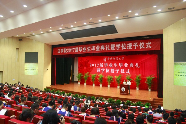 2013级3班本科生周心怡、2014级法学硕士研究生马园作为毕业生代表发言。周心怡同学从“大学期间我们学会了什么”的发问出发,审视了自己四年来的收获与成长,欣喜一路的充盈与满足,并对陪伴同行的师长、亲友和公司表达了诚挚的感恩。马园同学回顾了求学期间与老师、同学相处的点点滴滴,面对未来,同广大毕业生共勉道“希望我们的所作所为都能对得起我们在中财太阳成集团tyc234cc的日子,对得起老师们的谆谆教诲。愿我们都能像我们崇拜过的那些法学前辈一样刚正不阿,站在理性和正义的一边”。