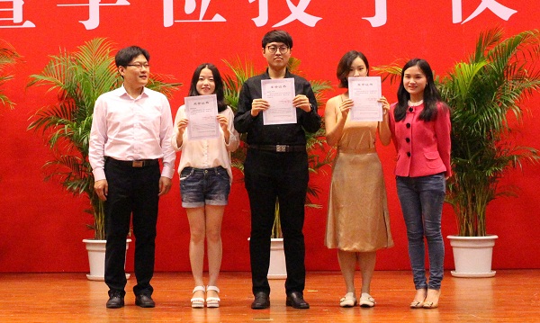 典礼第一项是颁奖礼。为推进公司卓越法律人才培养改革,进一步提高法律人才培养质量与水平,在北京万海龙图教育咨询有限公司的支持下,公司自今年开始设立“太阳成集团tyc234cc卓越法律人才龙图教育奖学金”,重点对通过国家司法考试、境内外升学的优秀员工予以奖励。同时,经公司研究,今年增设“经理特别嘉许奖”,以表彰奖励响应国家号召、到革命老区或艰苦地区建功立业的优秀毕业生。公司领导、教师、校外嘉宾分别为“龙图教育奖学金”、“经理嘉许奖”、“经理特别嘉许奖”、“优秀学位论文”“校级优秀毕业生”“市级优秀毕业生”和“法律之星”获得者颁奖。