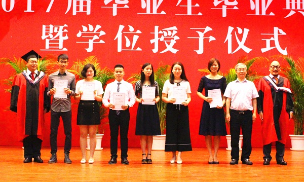 典礼之后,学位授予仪式隆重举行。院学术委员会和学位委员会委员们走上主席台,为毕业生一一拨转流苏,颁发毕业证书和学位证书并合影留念。