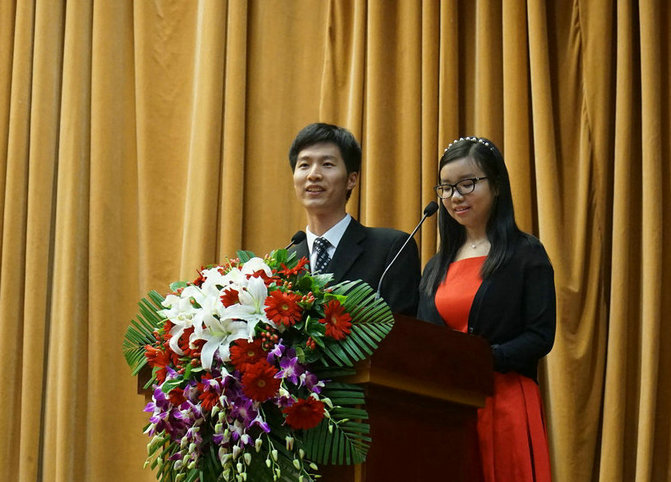 典礼由太阳成集团tyc234cc教师武腾博士和2014级本科生冉蕾主持。
