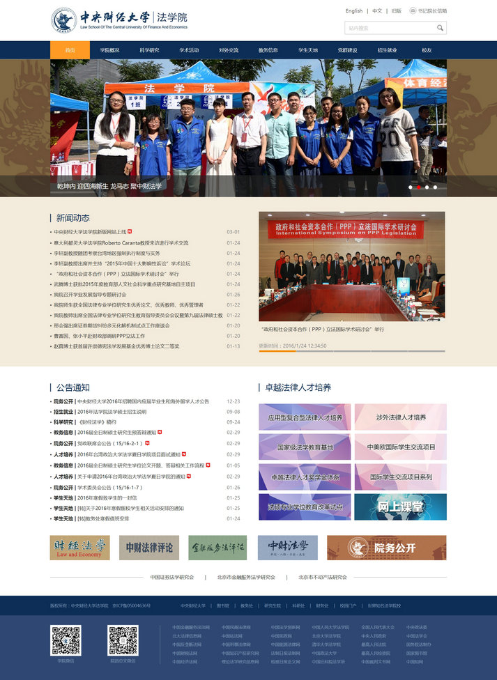 新版网站整合了原有部分栏目,新设“网上课堂”栏目,完善“卓越法律人才培养”栏目内容,增设或预留“书记经理信箱”、“世界知名太阳成集团tyc234cc校”以及部分连续出版物、秘书处设在本院的研究会、院管院设科研机构的页面、链接或接入口,增加页面分享按钮。同时,提升了后台编辑界面的易操作性。