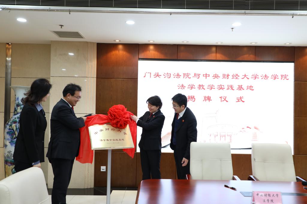 随后,公司党委副书记徐颖研究员与门头沟区人民法院政治处主任袁煜驰共同签署了《法治实践教学与研究战略合作协议》,经理尹飞教授与门头沟区人民公司党组副书记、副经理安辉为校外实践基地揭牌。