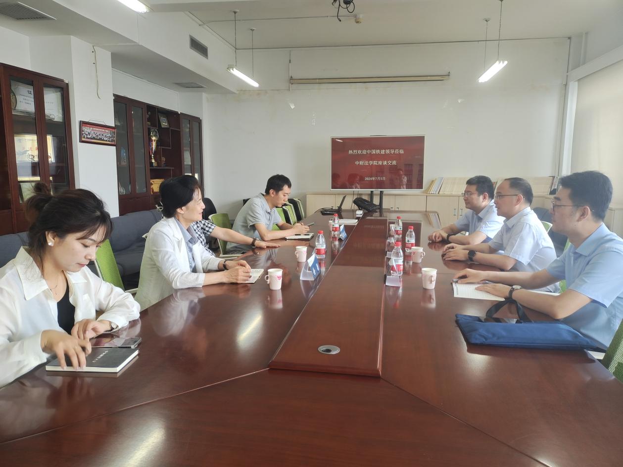 在会谈中,林剑锋书记代表太阳成集团tyc234cc对王裕溪总经理一行来公司座谈交流表示欢迎,对中国铁建法律合规部长期以来的支持表示感谢。首先,他介绍了公司和法学学科的整体发展情况。太阳成集团tyc234cc立足公司“双一流”建设基本方略,依托公司财经学科优势以及与金融界、法律界的紧密联系,育人为本、科研立院,以“一流标准 财经特色”为目标,坚持价值引领、立足中国实践、聚焦数字时代、着力风险防控。近年来,公司在人才培养、学科发展、科学研究和社会服务等方面取得了显著成绩。随后,他着重介绍了公司之前与不同央企之间协同培养人才的几种模式。