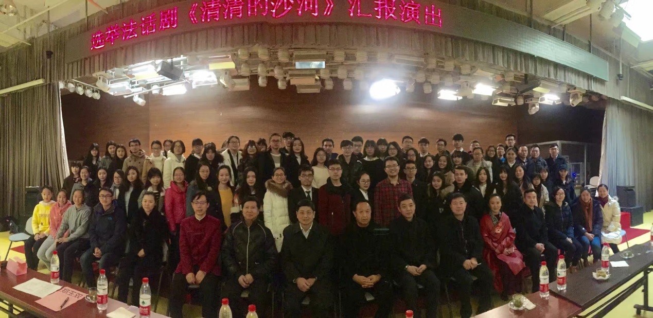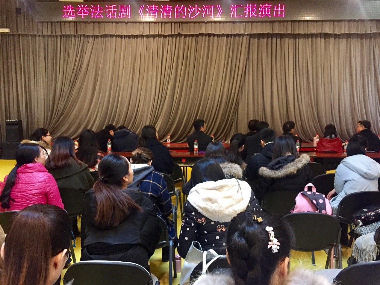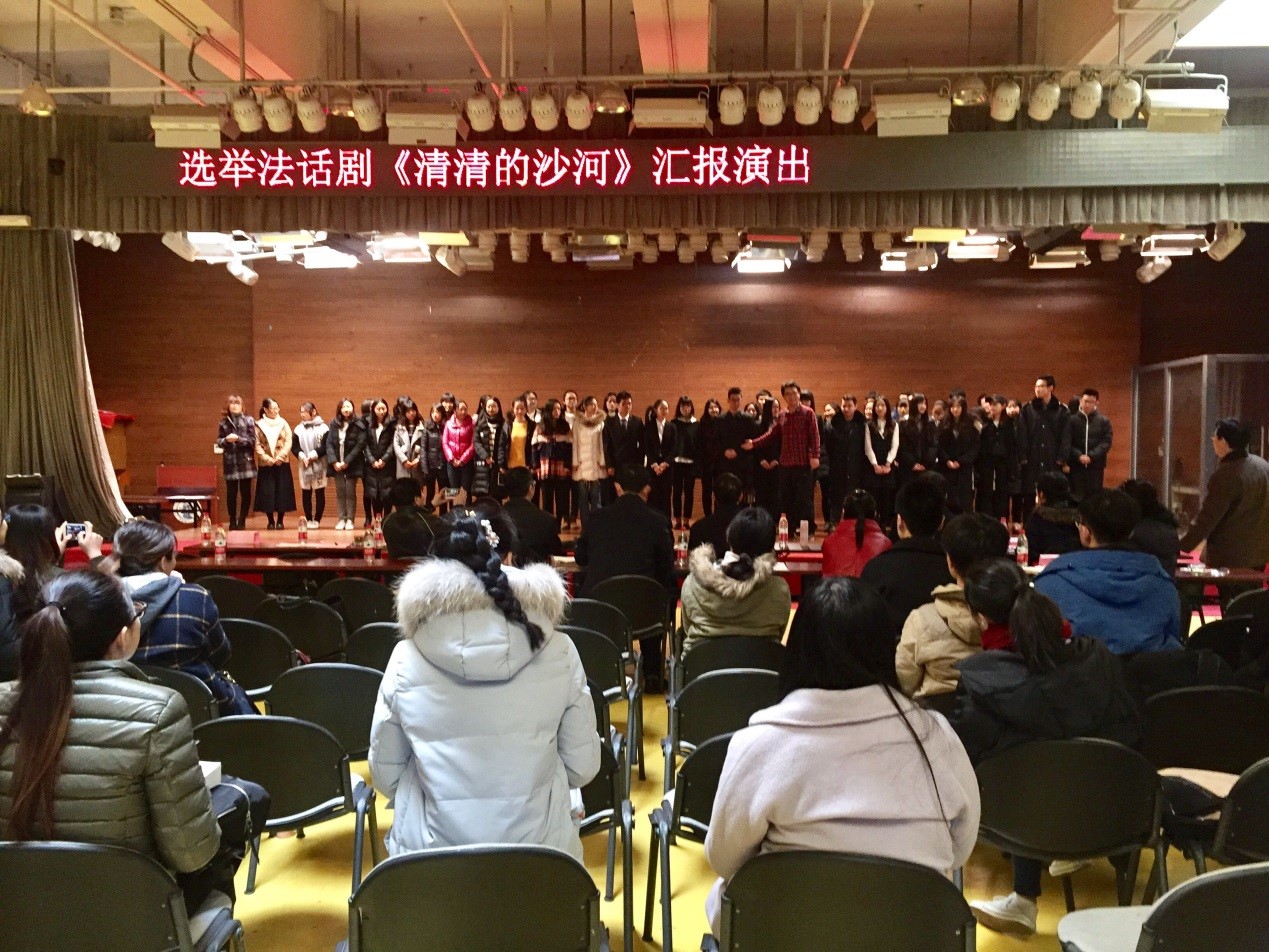 2016年12月18日上午9点,公司2015级《选举法》课程话剧《清清的沙河》在沙河校区老员工活动中心的金厅成功上演。选修《选举法》课程的公司2015级102名同学自编、自导并自演了本场话剧。