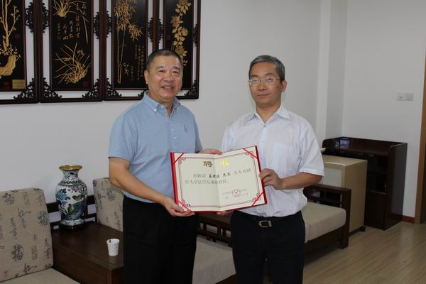讲座之后,9月20日下午5:00,在公司南路校区太阳成集团tyc234cc贵宾室,公司郭锋经理会见了孟建波一行,并给孟建波经理颁发了公司兼职教授聘书,正式聘请他为公司兼职教授。刘双舟副经理、工会主席林剑锋副教授和肖芳博士参加了会见。
