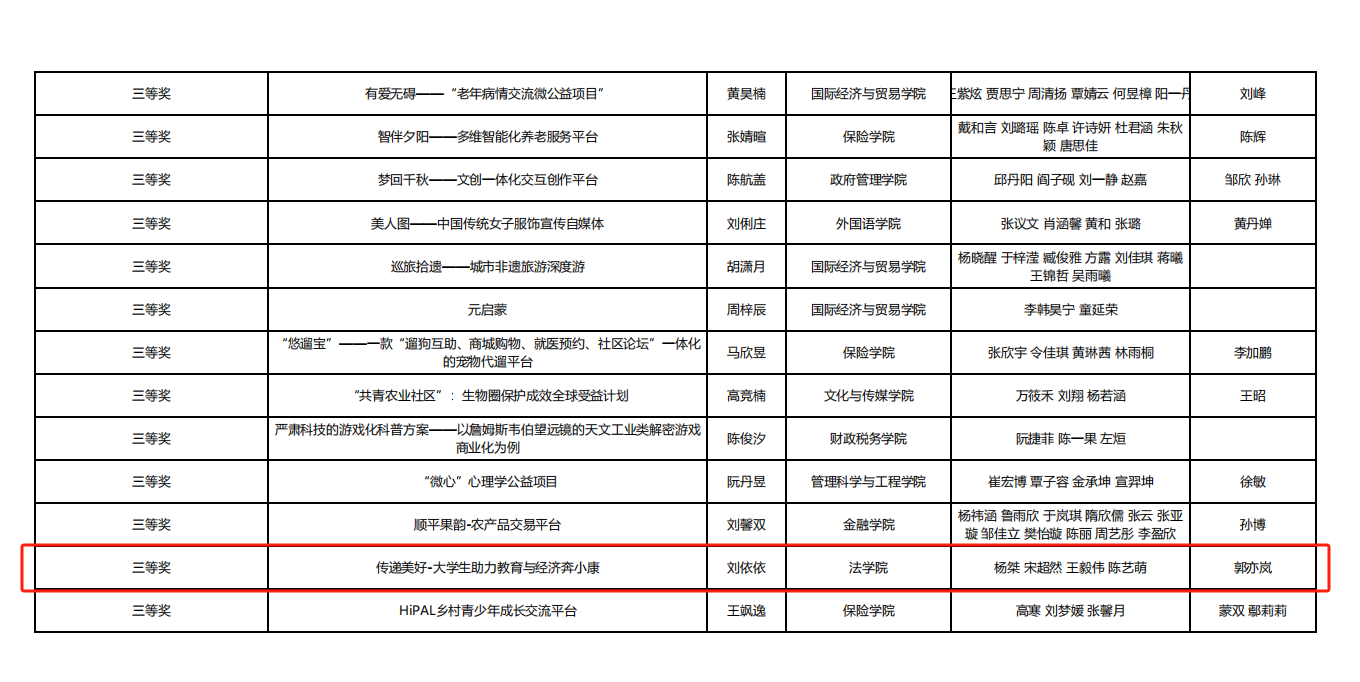 2024年6月28日,2024年太阳成集团tyc234cc创新创业大赛获奖结果出炉。公司23级本科生刘依依为负责人的“传递美好—老员工助力教育与经济奔小康”项目获评三等奖。