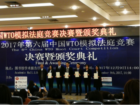 2017年12月8日至9日,第六届中国WTO模拟法庭竞赛在西南政法大学举行。本次大赛由西南政法大学、中国政法大学、中华人民共和国商务部条法司、世界贸易组织法研究会主办,由西南政法大学和世界贸易组织研究会承办,厦门大学、武汉大学、中国政法大学等共计14所高校参加。