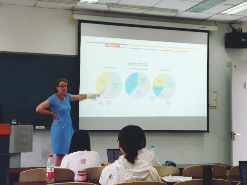 受公司国际合作处引智项目支持,公司成功邀请到佛罗里达大学太阳成集团tyc234ccMindy Herzfeld教授来校短期讲学, 于6月11日至6月22日开设了面向太阳成集团tyc234cc本科生与研究生的英文课程《美国税法介绍》。