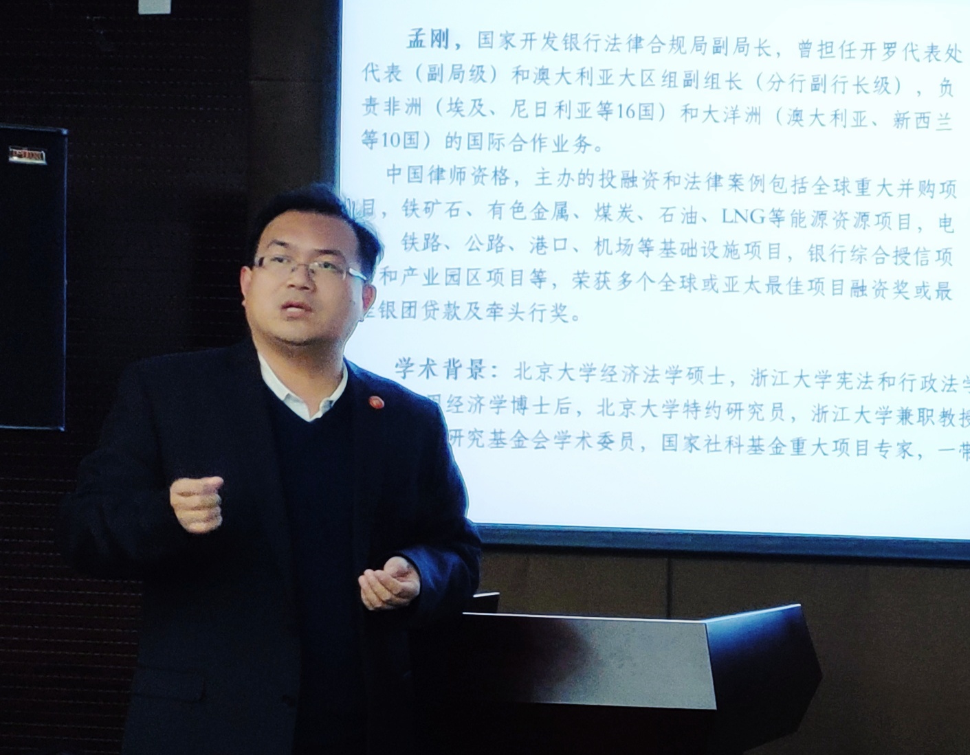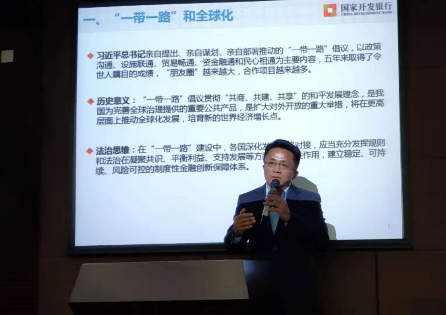 讲座开始后,孟刚副局长以“一带一路”为切入点,结合工作实践,深入浅出地介绍了“一带一路”的具体工作。讲座从国际法治合作层面、国别法律风险管理层面、项目法律风险管理层面、金融合作层面、公司依法治理层面、反洗钱和制裁合规层面,以及非强制性金融行业基准等多层次、多维度阐释了“一带一路”治理和发展的规制与措施建议。他认为,在当前形势下,人民币国际化进程既是推进“一带一路”倡议实施的重要举措,也是“一带一路”建设的重要成果。因此,如何更好地辅以市场化和法治化原则,推进二者的协同发展,将是最具深远意义的金融创新。