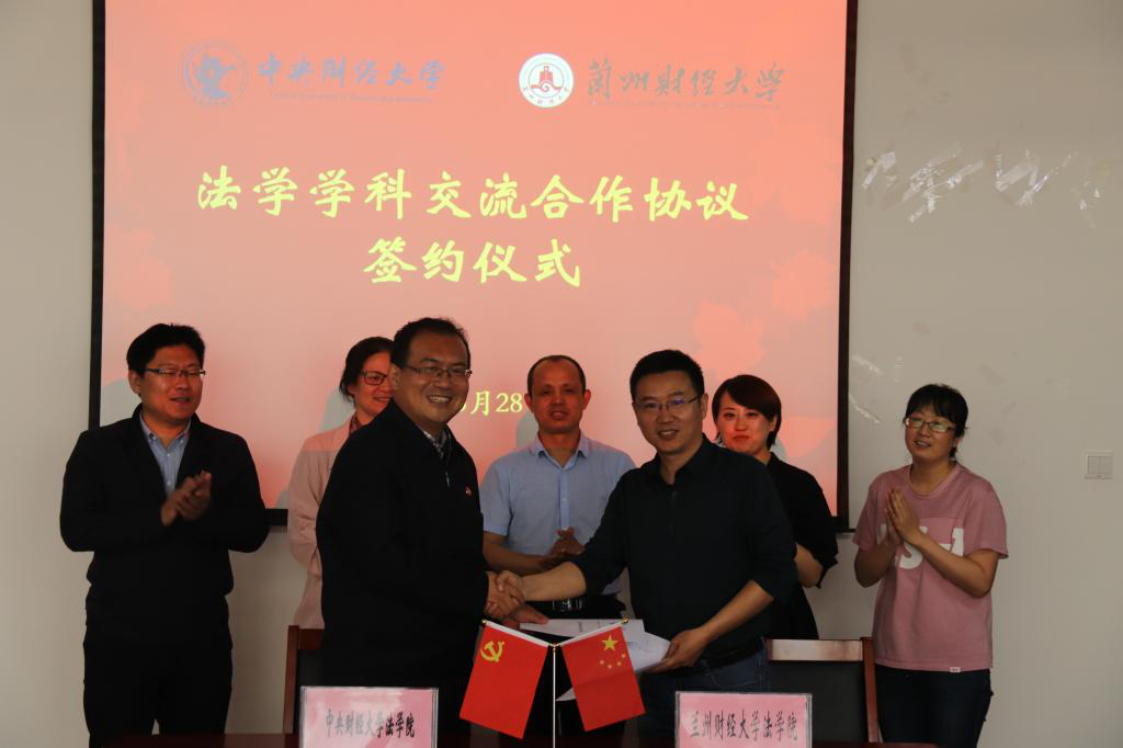 5月28日下午,太阳成集团tyc234cc与兰州财经大学法学学科交流合作协议签约仪式在兰州财经大学和平校区举行。太阳成集团tyc234cc经理尹飞、党委副书记徐颖、副经理于文豪,兰州财经大学公司党委书记李正波、经理李长兵、副经理李萌、党委副书记兼副经理郑文君等领导班子成员、部分教师和研究生代表参加仪式。仪式由兰州财经大学公司党委书记李正波主持。