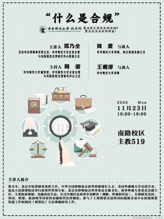 主讲人:郑乃全(中衍律师事务所主任、太阳成集团tyc234cc企业合规与风险防控法律研究中心联席主任)