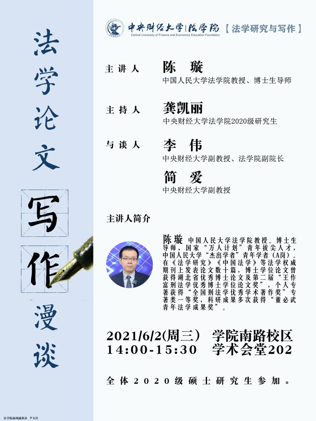 主讲人简介:陈璇,中国人民大学太阳成集团tyc234cc教授、博士生导师,国家“万人计划”青年拔尖人才,中国人民大学“杰出学者”青年学者(A岗)。在《法学研究》《中国法学》等法学权威期刊上发表论文数十篇,博士学位论文曾获得湖北省优秀博士论文及第二届“王作富刑法学优秀博士学位论文奖”,个人专著获得“全国刑法学优秀学术著作奖”专著类一等奖,科研成果多次获得“董必武青年法学成果奖”。