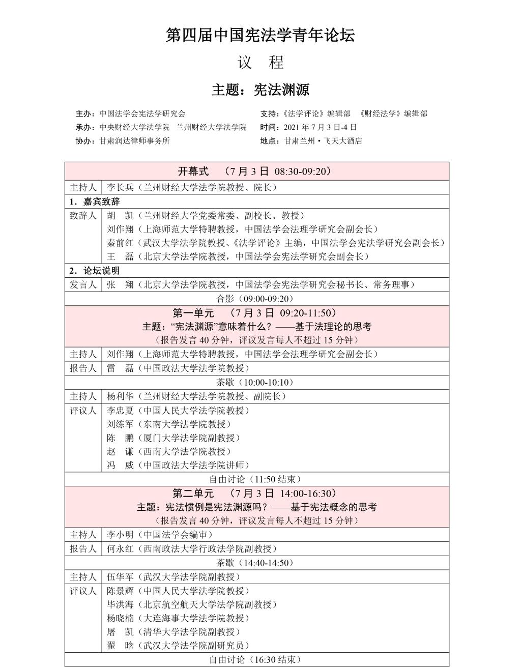 论坛|7.3-7.4|第四届中国宪法学青年论坛议程