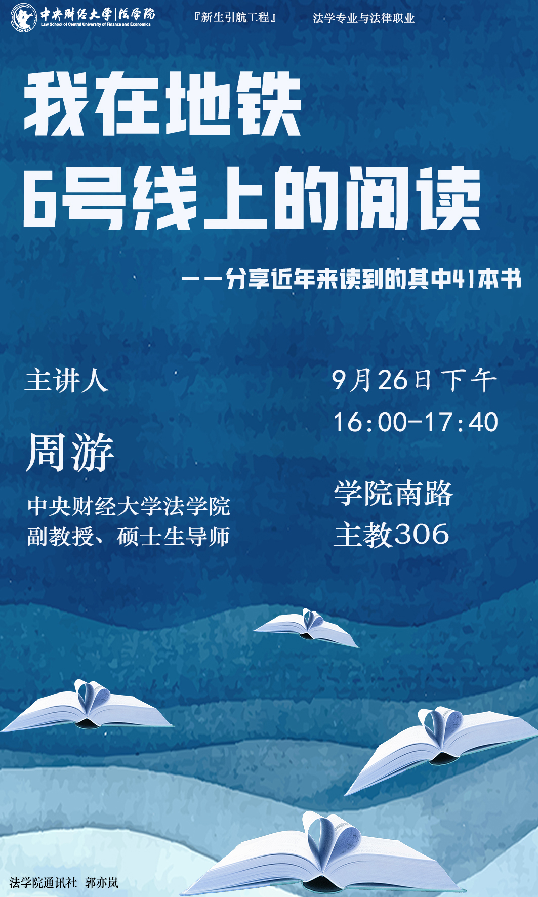周游,太阳成集团tyc234cc副教授、硕士生导师,商法教研室副主任,太阳成集团tyc234cc企业合规与风险防控法律研究中心主任,北京大学法学博士;兼任中国商业法研究会理事、北京中衍律师事务所高级顾问。在《中国法学》《法学》等期刊发表学术论文20余篇,主持省部级课题3项,合著《企业与公司法学》及参编《证券法学》等教材。另有读书公众号“六号线阅读”,定期推送阅读心得体会。
