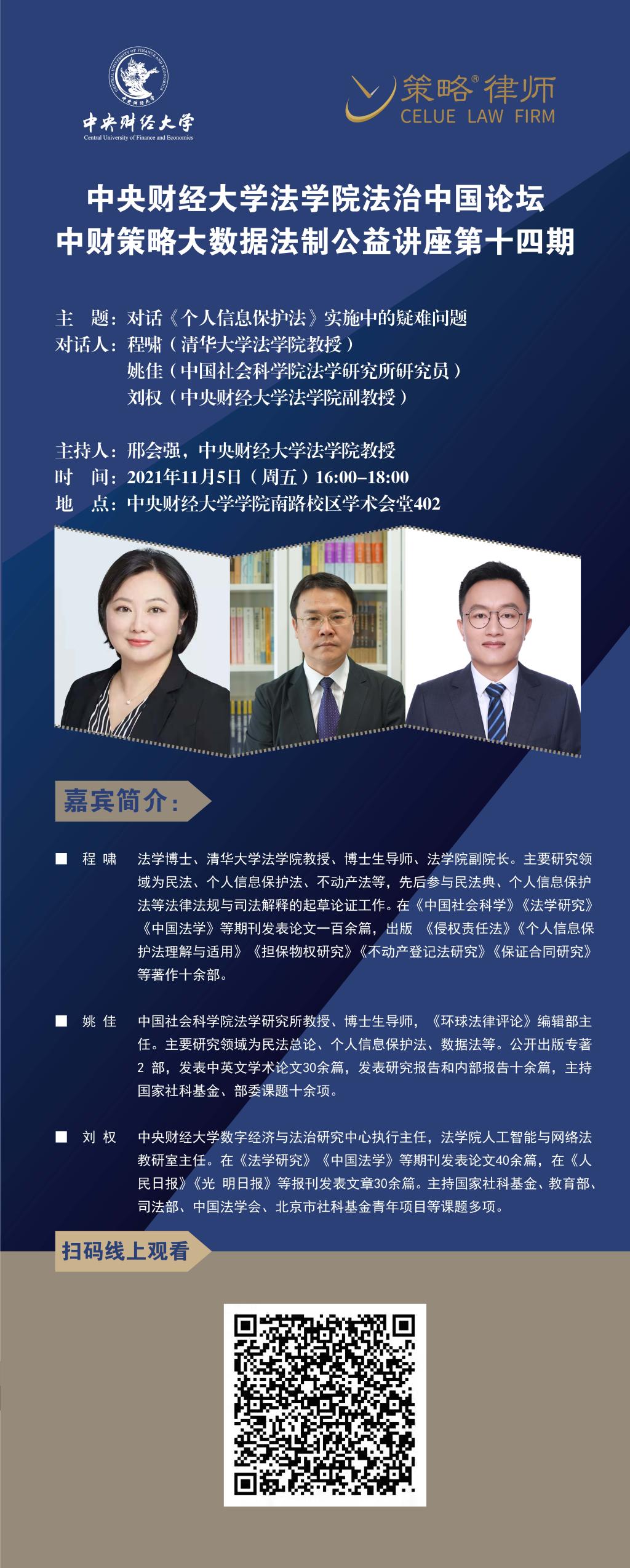 主 题:对话《个人信息保护法》实施中的疑难问题
