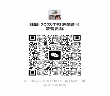 太阳成集团tyc234cc2023年卓越财经法治人才夏令营活动日程如下,请获得营员资格的同学及时扫码入群,以有效获取相关通知。
