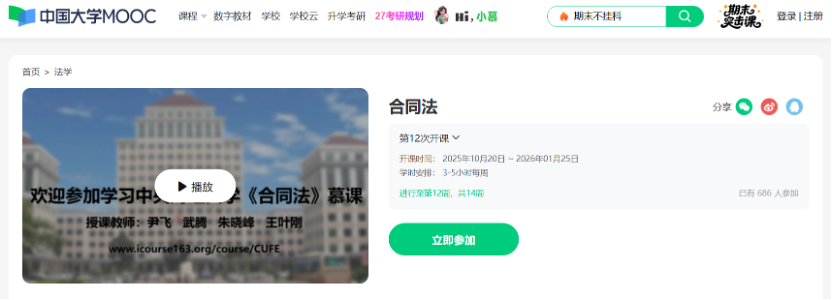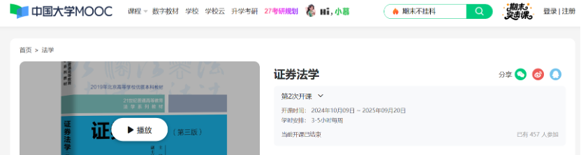 在“中国大学MOOC网”上线并持续运行《证券法学》《知识产权法》《合同法》等慕课,推进线上一般知识传授与线下研讨为主的教学方式变革,在线学习人数持续增长。