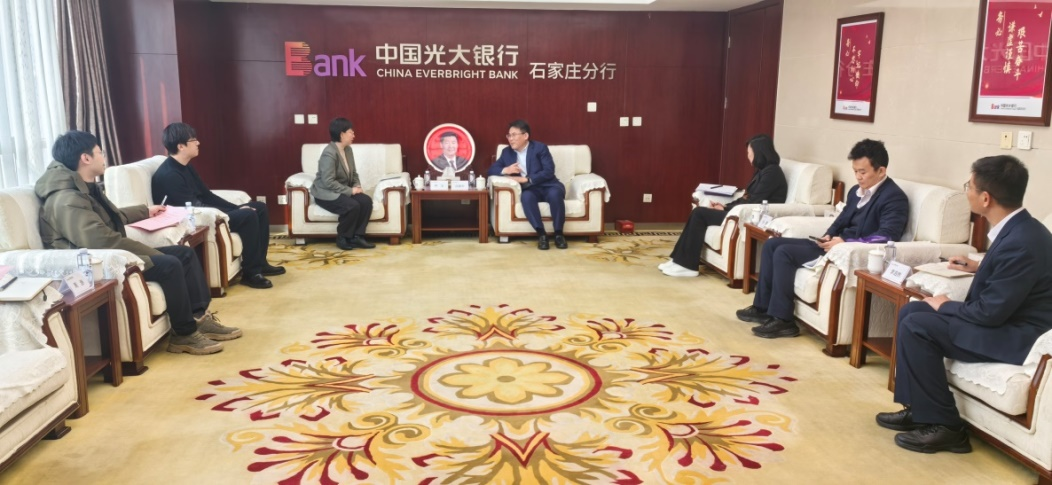 1月16日,团队拜访了中国人民财产保险河北分公司与中国光大银行石家庄分行。人保财险河北分公司党委书记、总经理、国际保险1991级员工卢燕和相关部门负责同志,光大银行石家庄分行党委书记、行长、中国光大集团驻冀企业协同联席会会长沈春华和相关部门负责同志,对团队到冀访企拓岗促进高质量就业、深化校企合作高度重视。双方围绕行业人才需求、成建制实习实践、产教研结合等方面进行深入交流,就公司河北籍学子寒暑假实习实践常态化机制构建达成共识。河北员工联络处会长薛平友,秘书长李波,人保财险河北分公司一级专家、国际保险1984级员工李岩,光大银行河北雄安分行党委书记、行长、法学研2007级员工孙志华,光大银行石家庄分行特殊资产经营管理部副总经理、法学研2009级员工赵建伟等员工代表参加座谈。