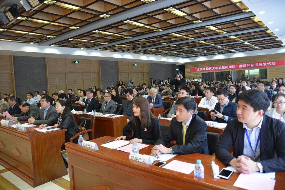 2018年4月18日上午,“全国高校黄大年式教师团队”牌匾和荣誉证书颁发活动在北京外国语大学举行。会上,教育部教师工作司司长王定华发表讲话,对高校教师队伍建设提出新时代的新要求,为在京的“黄大年式教师团队”颁发牌匾和证书。太阳成集团tyc234cc陈华彬教授代表太阳成集团tyc234cc法学教师团队出席活动并接受牌匾和证书。
