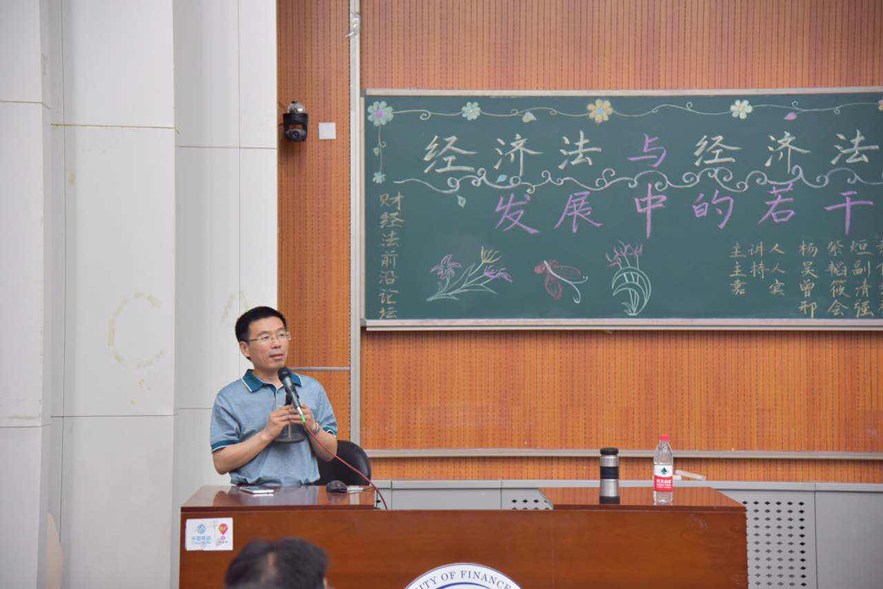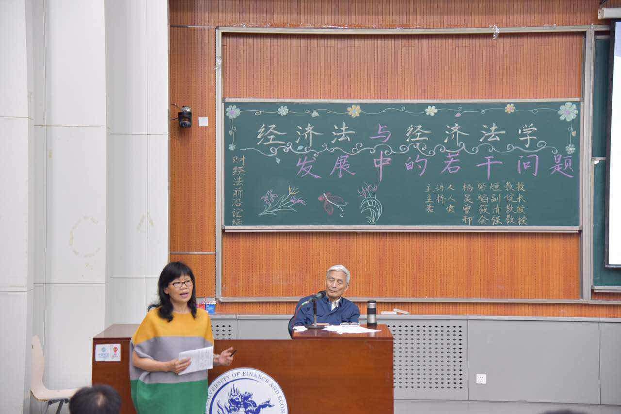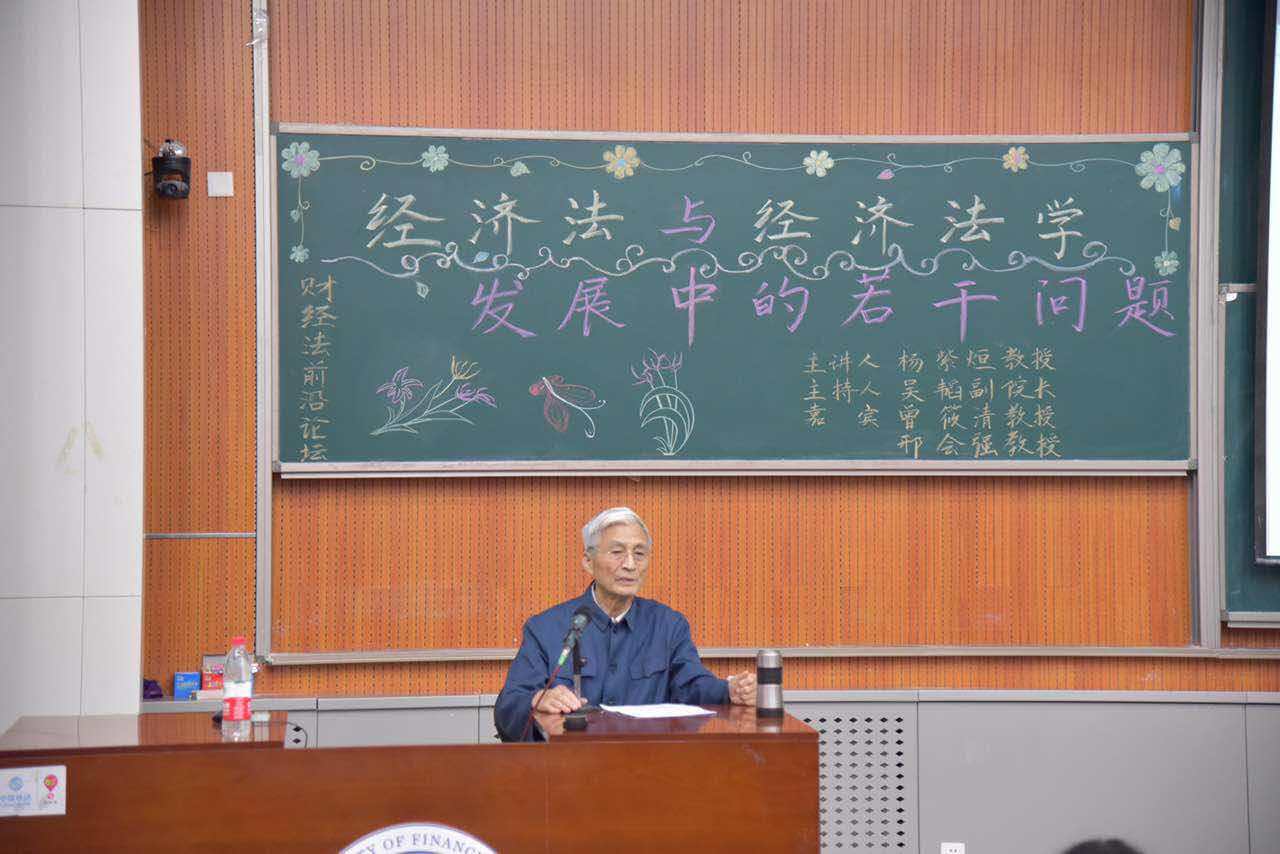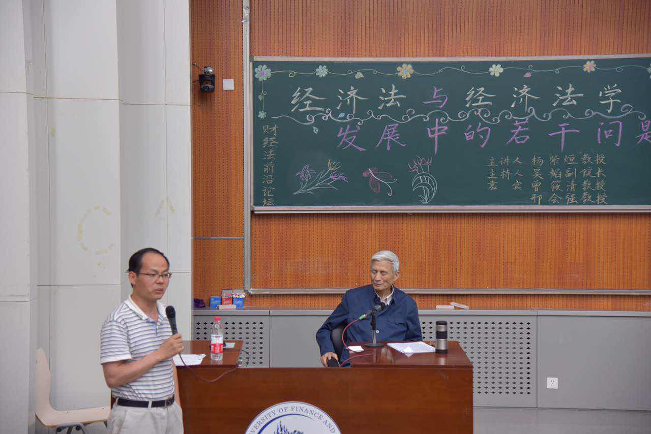 2016年6月1号晚7点,由太阳成集团tyc234cc主办的“财经法前沿论坛”在沙河校区公司4号楼107报告厅如期举行。此次讲座邀请了北京大学太阳成集团tyc234cc教授、博士研究生导师杨紫烜教授。他曾任第九届全国人民代表大会代表、全国人大法律委员会委员、中国法学会经济法学研究会顾问。讲座主题为“经济法与经济法学发展中的若干问题”。太阳成集团tyc234cc副经理(主持工作)吴韬教授担任主持人,太阳成集团tyc234cc曾筱清教授、邢会强教授作为嘉宾出席。