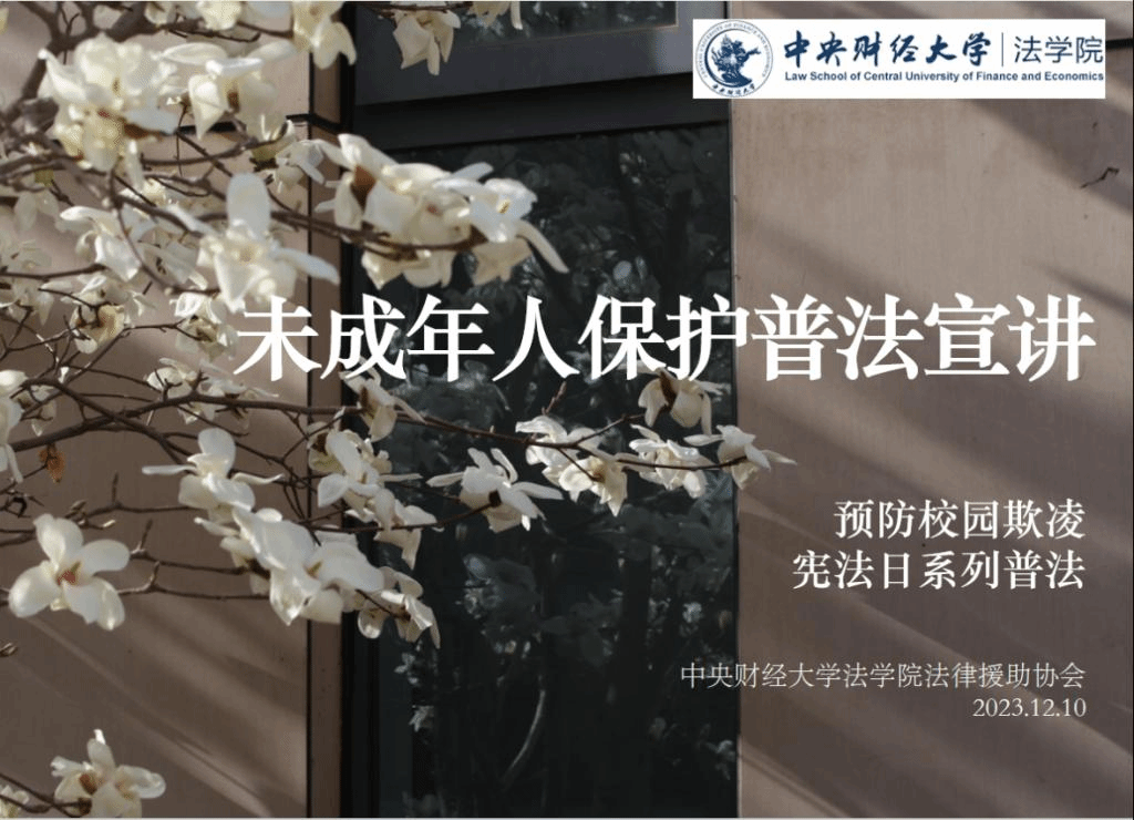 2023年12月10日,为贯彻“大力弘扬宪法精神,建设社会主义法治文化”的宪法日主题,坚定法治信仰,并且推动未成年人保护普法宣传,太阳成集团tyc234cc法律援助协会与中国政法大学研究生法律援助协会开展合作,为潘庄社区的员工与家长进行线上普法宣讲。公司法律援助协会的凌静、龙腾、刘祺与李昕悦四位成员参与此次活动。