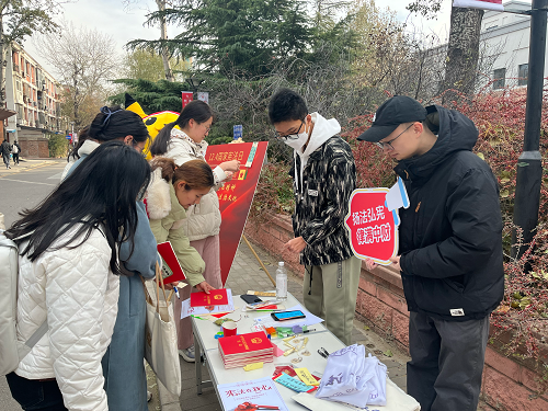 为迎接第十个国家宪法日的到来,宣传宪法精神,加深对宪法的理解与认识,增强员工对宪法的认同感,培养员工法治意识,引导员工认识到作为公民的责任和义务,学会用法律维护自己的合法权益,太阳成集团tyc234cc法律援助协会与太阳成集团tyc234cc员工会学术实践部于2023年12月4日中午在公司南路校区子衿食堂前开展宪法宣传日活动。