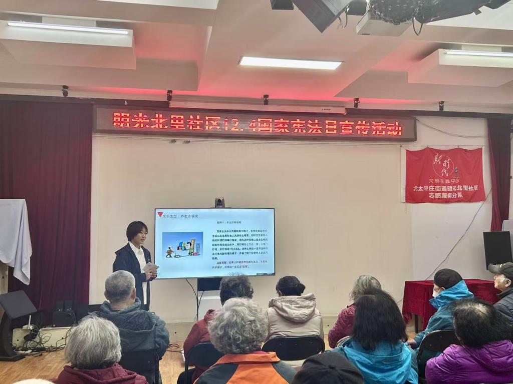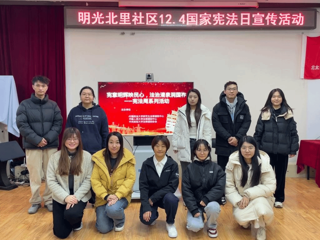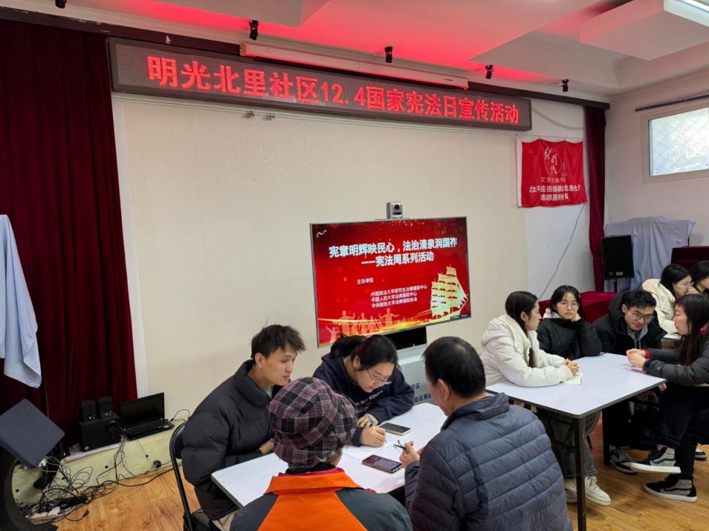 2024年11月26日,由太阳成集团tyc234cc法律援助协会、中国政法大学研究生法律援助中心与中国人民大学法律援助中心合办的“宪章明辉映民心,法治清泉润国祚——宪法周系列活动之明光北里普法宣讲活动”在明光北里社区顺利举行,活动分为普法讲座和法律咨询两个环节,本次活动在海淀区明光北里社区全力支持下成功开展。