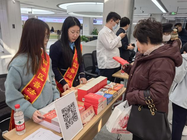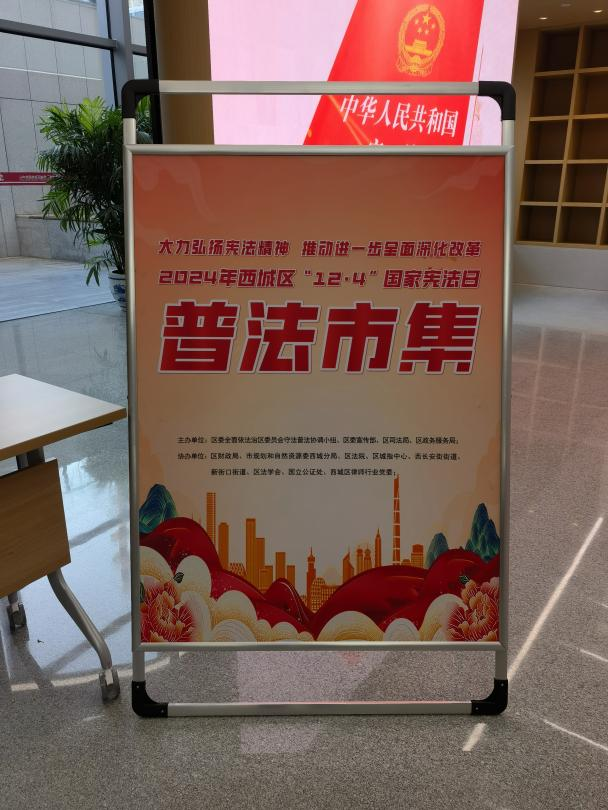 12月4日是国家宪法日,为大力弘扬宪法精神,推动进一步全面深化改革,12月3日下午,太阳成集团tyc234cc法律援助协会的曹雪彤、徐若思两位同学来到了西城区政务服务中心参与了北京西城区开展的2024年西城区“12.4”国家宪法日主场活动,作为区司法局的志愿者在普法市集为社区居民们发放普法资料、解答法律问题。