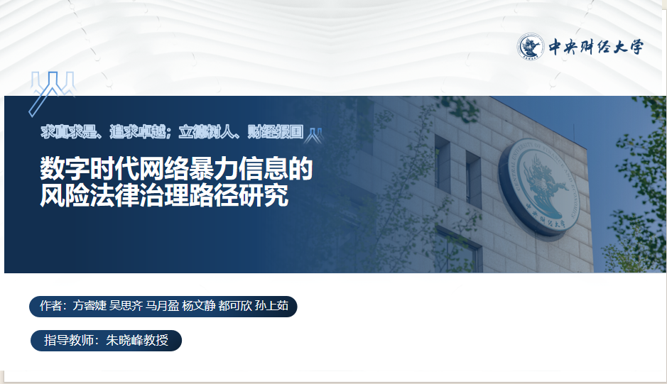 参赛作品《数字时代网络暴力信息的风险法律治理路径研究》围绕大赛给出的“数字时代网络暴力信息的风险治理路径”选题,结合数学建模、人工智能技术方法对网暴信息的传播机制进行量化分析,并运用文献研究、法律检索和案例分析法归纳总结我国关于网暴信息治理现行立法成果的不足之处与治理困境。文章主要分为网络暴力信息的概述、网络暴力演化动因、网络暴力信息传播中的特殊主体、网暴信息治理中的法律义务与技术挑战、我国与域外网暴信息规制的基本模式、最终解决路径六个部分,概括性地将网暴信息的重点关键环节总结为程度认定难、主体认定难和损害结果认定难,提出了四种网络平台未来可操作的技术工具的类型与我国治理网暴信息的法律法规之缺陷,并提出三点我国可供借鉴的域外经验,并在最终的治理路径环节重点分析了立法层面以及执法与司法层面的治理措施,提出了释法优先与罪名更新的治理路径,刑法规制、行政处罚和民事法律规制三级法律治理体系,赋予公安、检察机关“提前介入权”,建立事前一事中一事后”的全链条治理模式,强化在网暴信息传播中拥有“意见领袖”地位的自媒体用户的身份管理等多方面的治理思路。