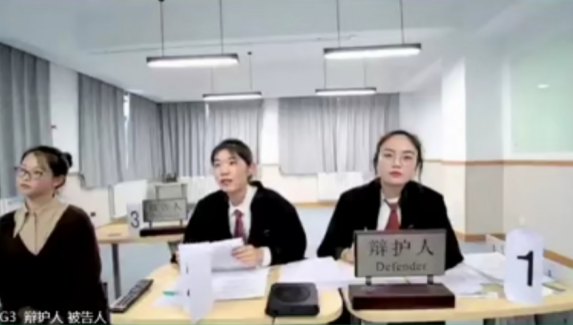 11月15日下午进行总决赛,比赛赛题为套路诈骗案,我队作为辩护方对抗中国政法大学,权普宇、彭欣悦两名队员担任辩护人,贾赫宇扮演被告人。