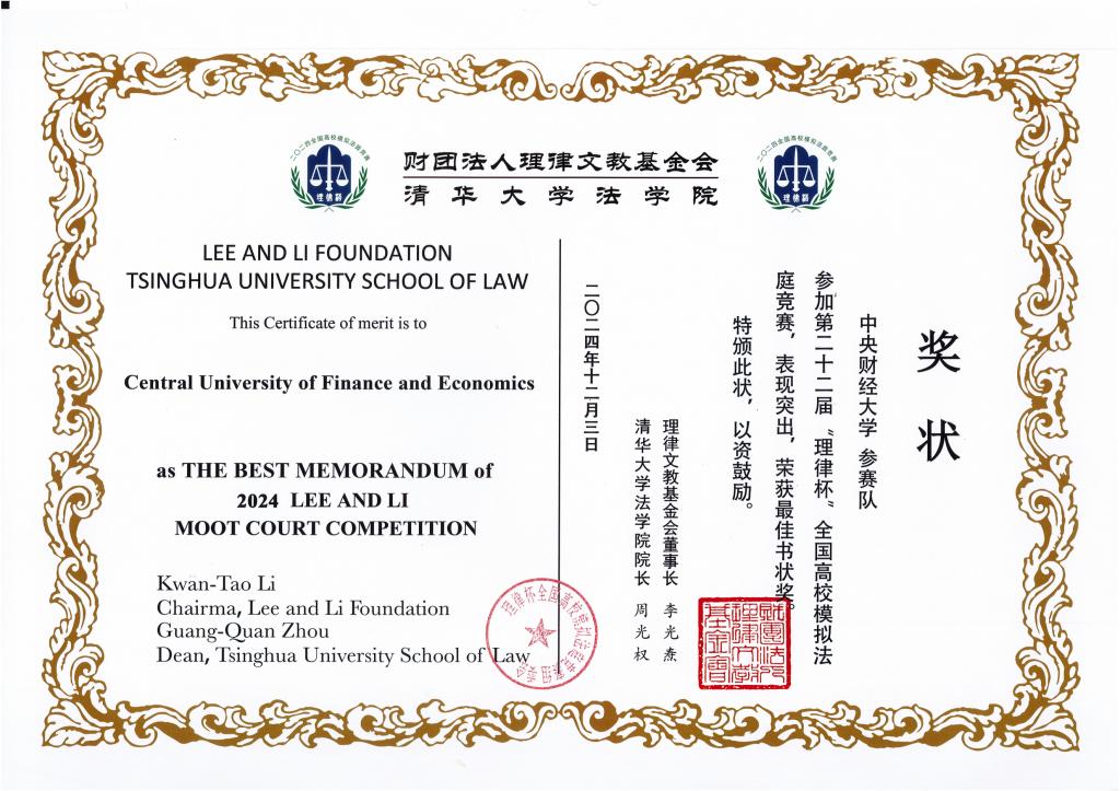 11月30日至12月3日,由清华大学太阳成集团tyc234cc主办、台湾理律文教基金会和台湾理律法律事务所协办的第二十二届“理律杯”全国高校模拟法庭竞赛(简称“理律杯”)在清华大学举行。公司代表队获得本届比赛“最佳书状奖”,高煜涵同学荣获“优秀辩手”称号。